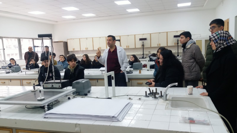 Eğitimde yenilikçi yaklaşımlarıyla dikkat çeken Elazığ Bilgem Koleji, “10 Günde 10 Okul” projemizin heyecan dolu duraklarından biri oldu. Lise öğrencilerinde bilimsel farkındalık oluşturmak ve fizik disiplinine karşı ilgi uyandırmak amacıyla yola çıktığımız bu projede, Bilgem Koleji öğrencileriyle laboratuvarlarımızda bir araya geldik. Fiziğin iletişimden enerjiye, günlük yaşamdaki somut örneklerini deneyimleyen gençlerimiz, akademik atmosferimizi yakından tanıyarak kariyer hedefleri için değerli bir tecrübe kazandılar. Misafir öğrencilerimiz ve Hocaları bu ziyaret ve gösterilen ilgiden büyük bir memnuniyet duyduklarını ifade etmişlerdir.