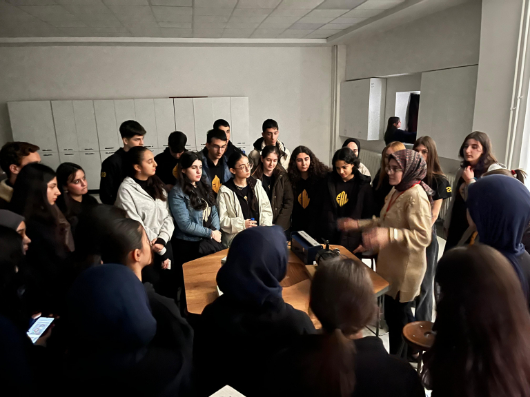 Üniversite-lise bağlarını güçlendirmek ve bilimsel düşünme kültürünü yaygınlaştırmak amacıyla hayata geçirdiğimiz “10 Günde 10 Okul” projemizde Elazığ Anadolu Lisesi öğrencilerini konuk ettik. Projemizin sunduğu imkanlarla laboratuvarlarımızda vakit geçiren gençler, teknolojinin temelindeki fizik kurallarını yerinde gözlemlediler. Bu buluşma, gençlerimizin akademik hedeflerine ulaşmaları noktasında büyük bir motivasyon kaynağı olmuştur. Ziyaretleri sırasında kendilerine gösterilen ilgi ve alakadan dolayı misafir öğrencilerimiz ile hocaları memnuniyetlerini dile getirdiler.